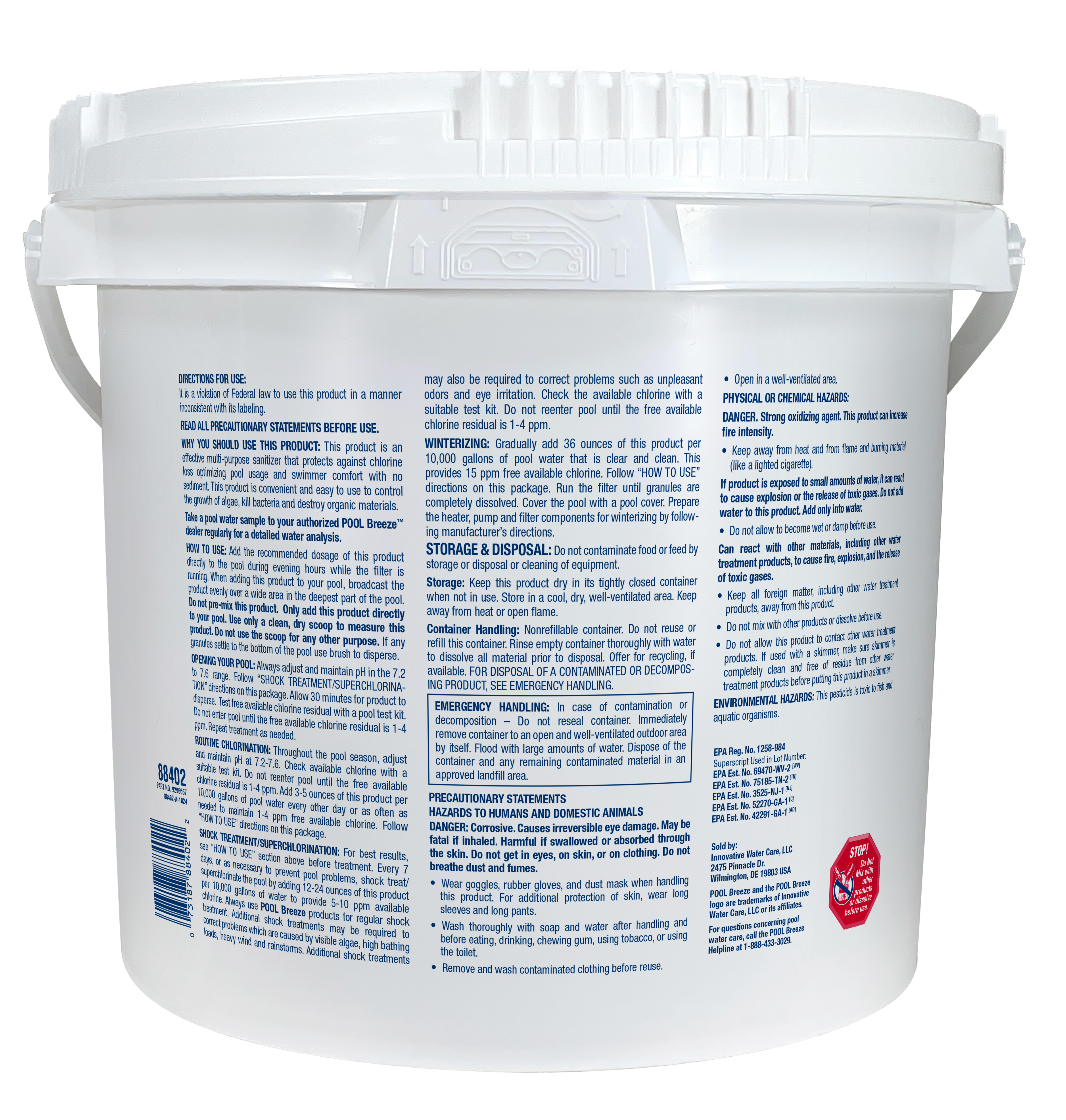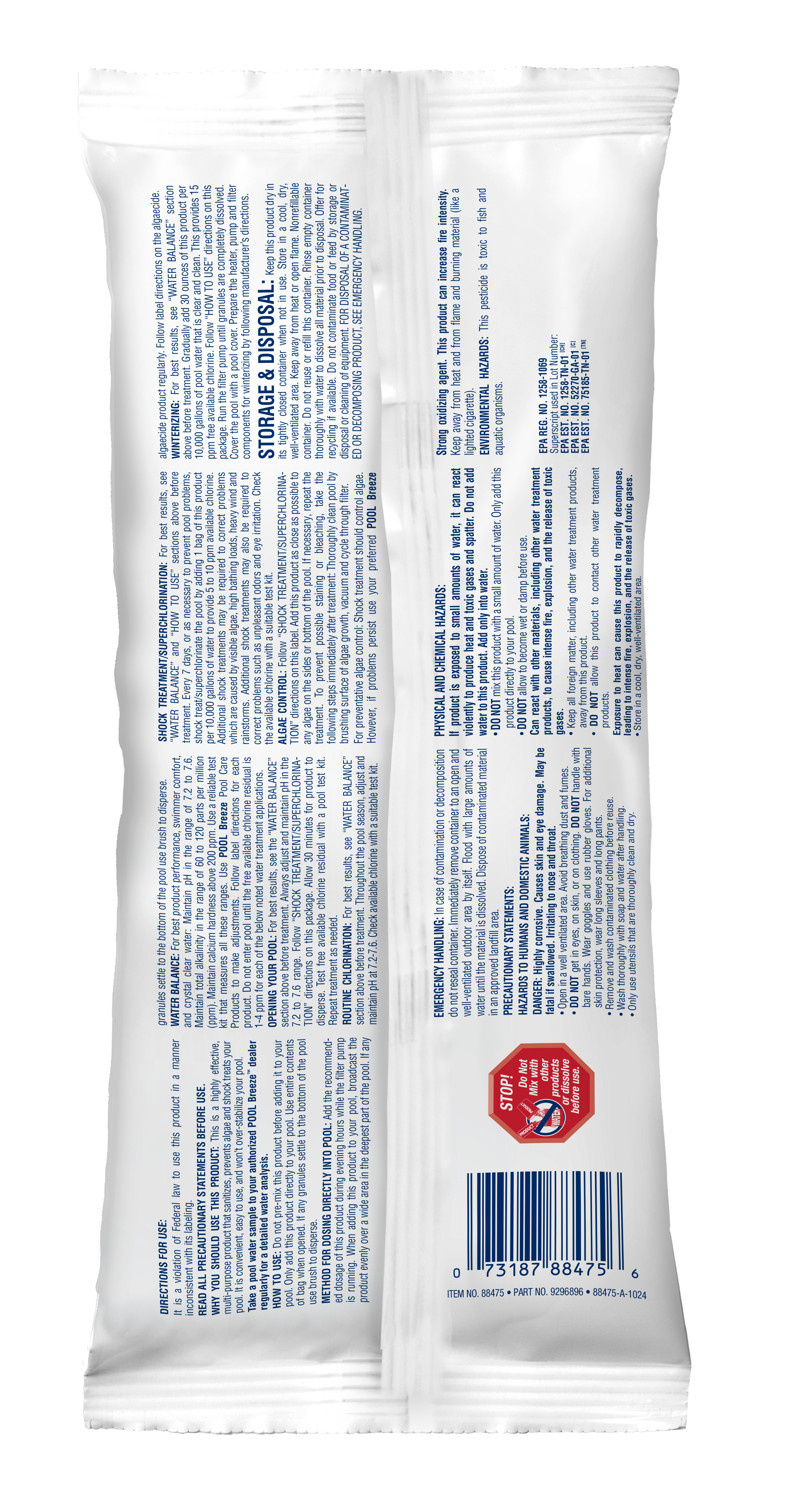 Convenient & effective multi-purpose sanitizer & shock. Protects against chlorine loss, controls algae growth, kills bacteria & destroys organic materials to optimize pool usage & improve swimmer comfort with no sediment.